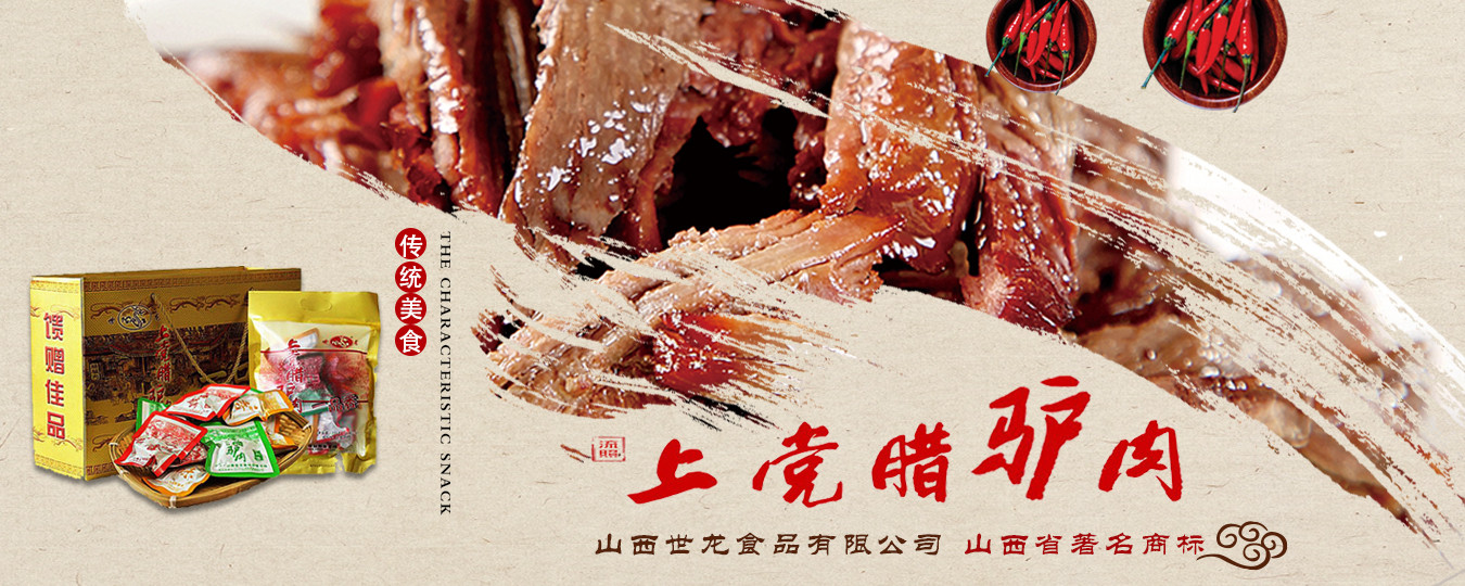 山西世龍食品有限公司是以“世龍”牌上黨臘驢肉系列產(chǎn)品為主導(dǎo),集科研開發(fā)、良種繁育、基地建設(shè)、生產(chǎn)加工、市場營銷于一體的農(nóng)業(yè)產(chǎn)業(yè)化國家重點(diǎn)龍頭企業(yè)、全國農(nóng)業(yè)標(biāo)準(zhǔn)化示范區(qū)、全國食品行業(yè)優(yōu)秀龍頭企業(yè)、山西省農(nóng)業(yè)產(chǎn)業(yè)化重點(diǎn)龍頭企業(yè)、山西省農(nóng)產(chǎn)品加工“513”工程單位、山西省帶動(dòng)貧困地區(qū)基地建設(shè)重點(diǎn)龍頭企業(yè)、山西省民營畜牧業(yè)示范基地、山西省質(zhì)量信譽(yù)AAA級單位、山西省重合同守信用單位、山西省消費(fèi)者協(xié)會(huì)誠信單位、山西省民營科技企業(yè)。